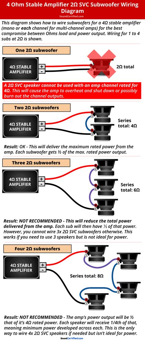 4 Ohm Sub Wiring. Option 1 (parallel/parallel) = 1 ohm load voice coils wired in parallel, speakers wired in parallel recommended. Web although the minimum load on an amp can be 4 ohms, it doesn't have to be wired that way.